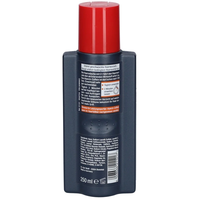 شامپو آلپسین C1 پرفروشترین شامپوی ضد ریزش مو در اروپا است که با فرمول انحصاری کافئین کمپلکس، مستقیماً ریشه مو را تحریک کرده و از ریزش موی ارثی جلوگیری میکند. این شامپوی آلمانی اورجینال با حجم 250 میلیلیتر، اثربخشی کافئین را مستقیماً به فولیکولهای مو میرساند و باعث تقویت، رشد مجدد و افزایش ضخامت موها میشود. شامپو Alpecin C1 محصول شرکت معتبر Dr. Wolff آلمان بوده و در بیش از 40 کشور جهان به فروش میرسد.